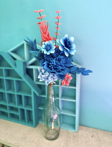 Ces fleurs ont été créées pour Le Silex à Auxerre, lieu que j’affectionne particulièrement. Les teintes — corail, orangé, bleu — s’inspirent de ses murs, de sa lumière et de son énergie, et dialoguent avec l’espace qui les accueille.