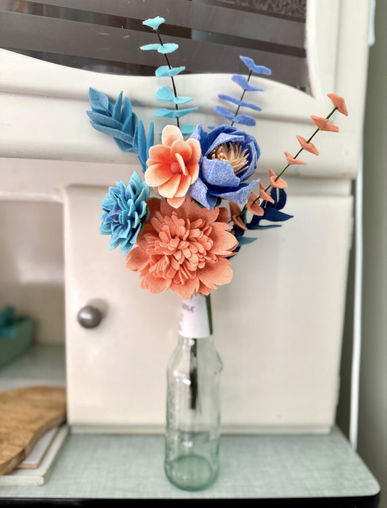 Ces fleurs ont été créées pour Le Silex à Auxerre, lieu que j’affectionne particulièrement. Les teintes — corail, orangé, bleu — s’inspirent de ses murs, de sa lumière et de son énergie, et dialoguent avec l’espace qui les accueille.