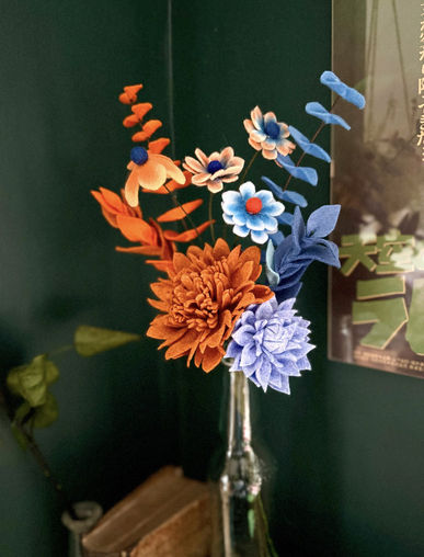 Créée spécialement pour mon exposition HŌWA au Silex (du 19 septembre au 17 décembre 2025), cette collection réunit douze bouquets textiles, entièrement réalisés à la main. Chaque composition est pensée comme une pièce singulière.